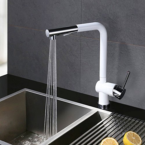Título: DESFAU 2 Funciones Blanco Grifo de Cocina extraíble 360° Giratorio Grifo de Fregadero Monomando de Fregadero Grifería Cocina Agua Fría y Caliente